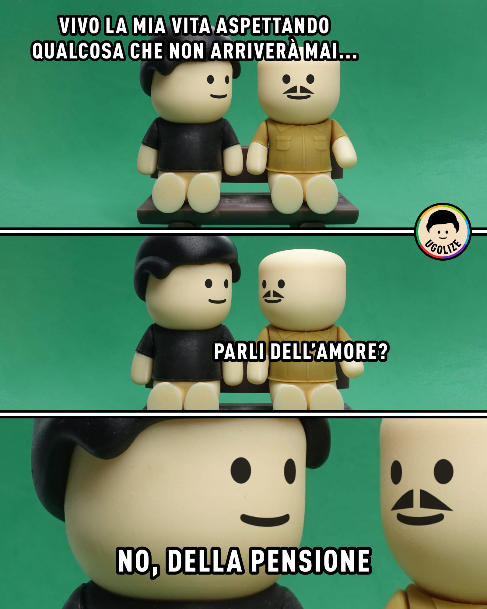 È su questo meccanismo che si muove Ugolize, una delle community satiriche più seguite in Italia, fondata da Pietro Alcaro insieme a Samuele Rovituso e Mattia Marangon, una generazione cresciuta a cavallo tra Millennials e Gen Z. Nelle loro vignette intercettano con regolarità le stesse coordinate: lavoro che non decolla, aspettative che si ridimensionano, ansia che entra nel linguaggio quotidiano, relazioni che cambiano equilibrio. A raccontarlo a Demografica è Alcaro: dietro contenuti così immediati c’è un lavoro costruito nel tempo, ma soprattutto uno sguardo molto nitido su quello che oggi tiene insieme – e spesso blocca – chi sta entrando nella vita adulta e chi ci è già dentro da anni.