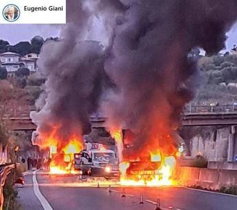 Livorno, assalto a un portavalori sull’Aurelia: fiamme alte e colonne di fumo