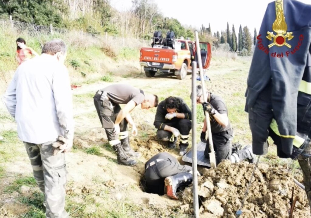 Allargando il secondo varco, i vigili del fuoco sono riusciti a raggiungere e recuperare il cane, riportandolo in superficie in buone condizioni. L’intervento è durato circa tre ore e mezza e ha richiesto un impegno tecnico significativo da parte del personale intervenuto.