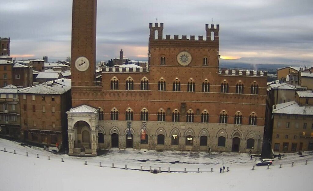 Temperature polari nella notte si sono registrate al Passo delle Radici (-12), Pieve Santo Stefano (-9,5), Montopoli (-6,2) e Firenze (-4,4). Neve è caduta anche su Siena, imbiancando piazza del Campo.